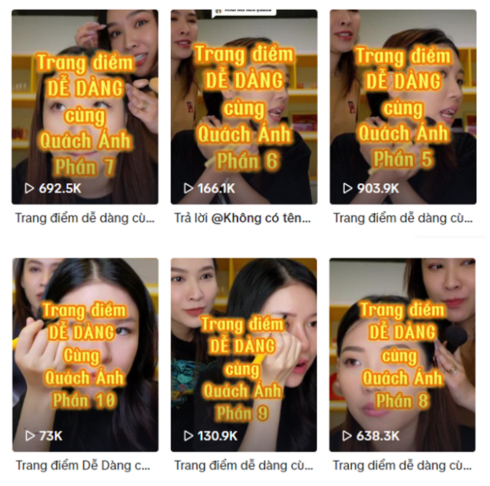 현재 Quach Anh 틱톡 채널은 주로 여성들에게 유용한 메이크업 팁을 제공한다.